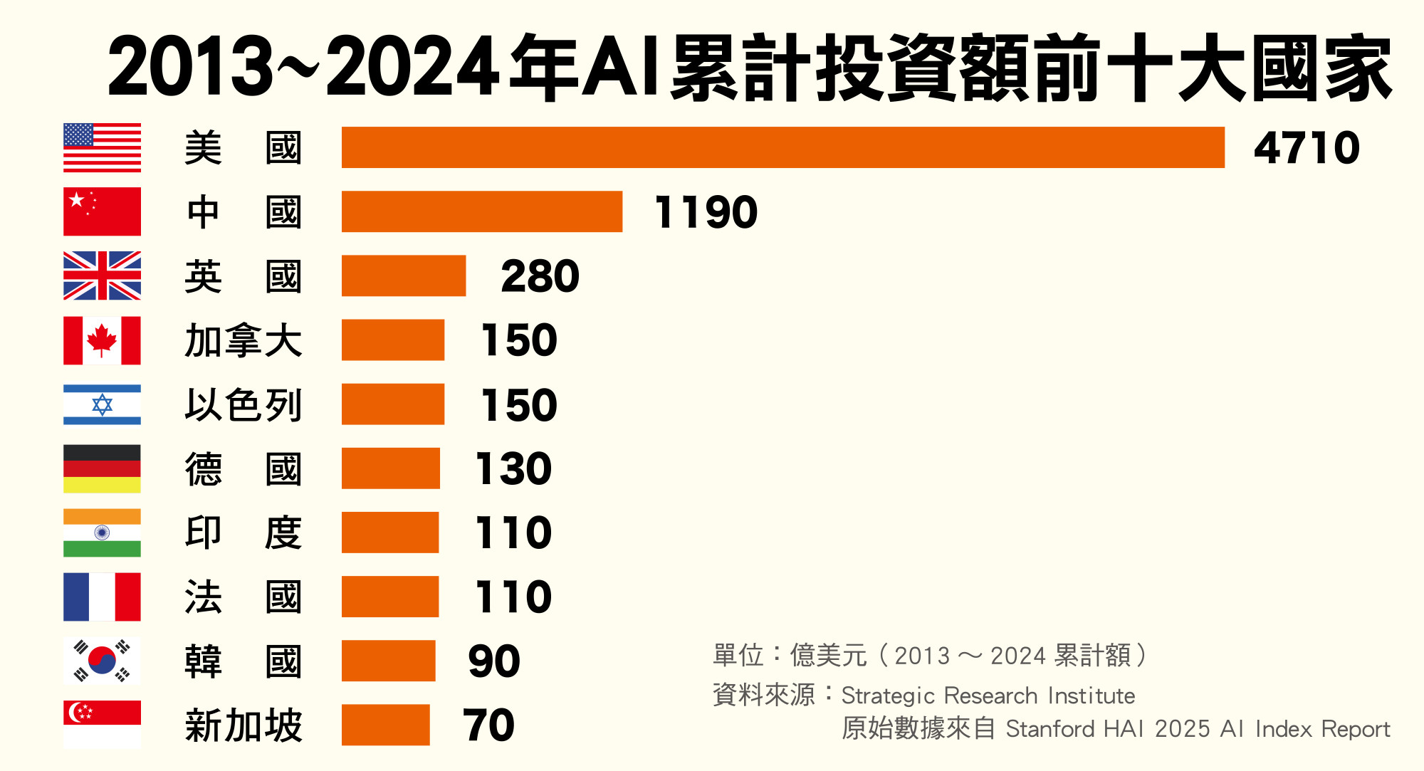 - 台灣研發經費占GDP比重高居全球第3,但科研體質脆弱,實際AI研究經費只約3億美元。