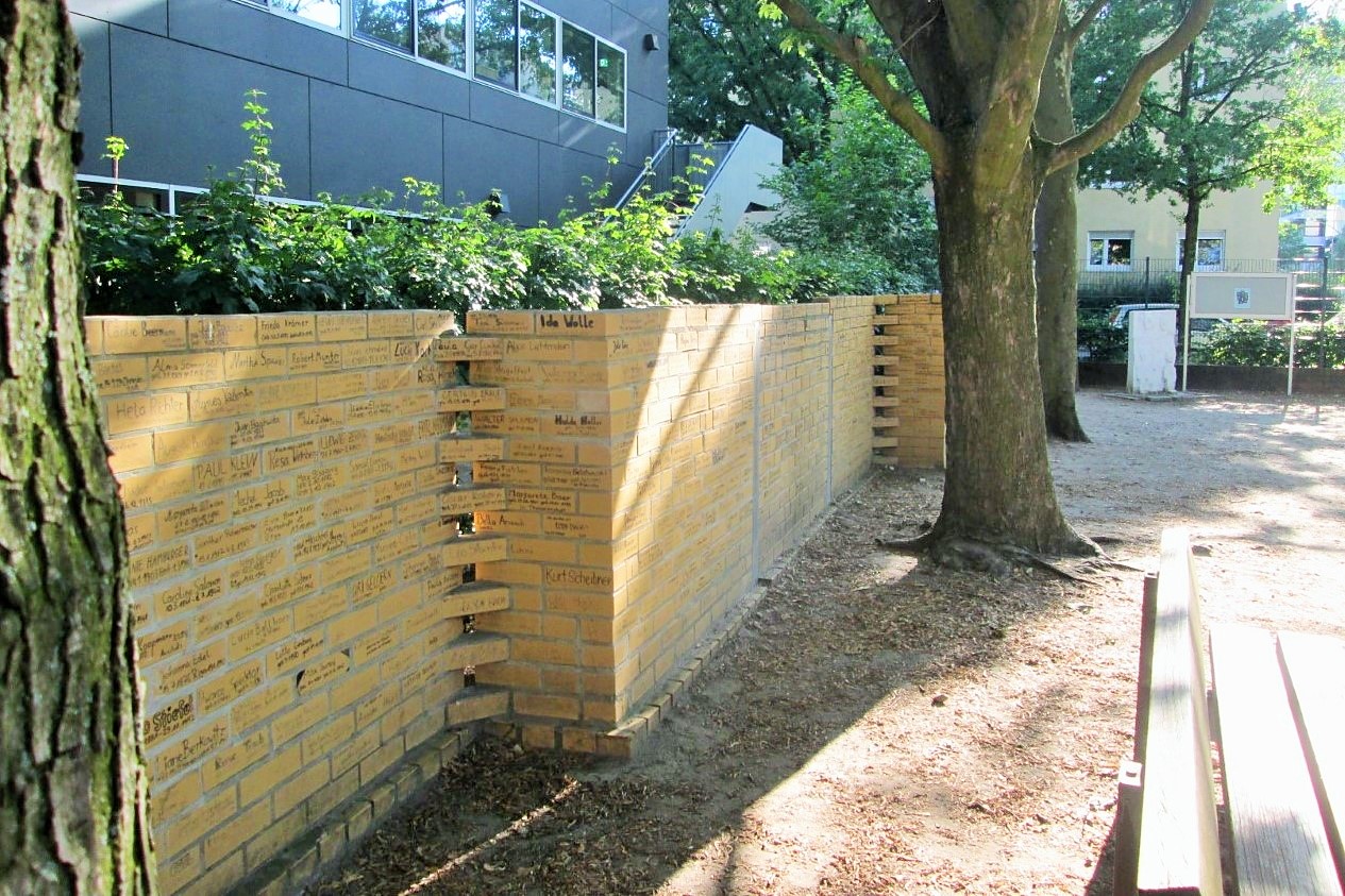 這一系列課程的最高潮,則是學年末的「堆磚儀式」。小學的遊戲場上有道用黃磚瓦砌成的牆,每塊磚瓦上可見不同的兒童字跡。1994那屆的六年級生,把施納柏格區猶太孩童受難者的名字寫在磚頭上,好紀念他們。這個企畫被延續下來,成為學校傳統,至今沒有間斷過。每年的小六生可從市政廳的文獻裡選擇一名遭到迫害的猶太兒童,將其姓氏與生卒日寫到磚瓦上,再於堆磚儀式上慎重地將自己的磚頭砌到原有的牆上。