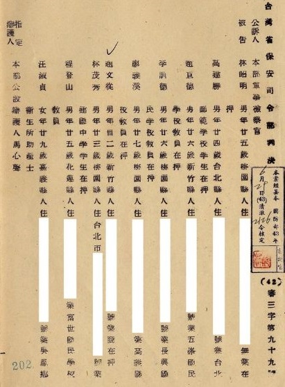 就憑這些罪狀,1954年四月四日初審判決,同年六月二十九日覆判確定:林昭明、高建勝、趙巨德等三人,判有期徒刑十五年;李順德、廖義溪兩人,判七年;趙文從、林茂秀、程登山等三人,判二年。