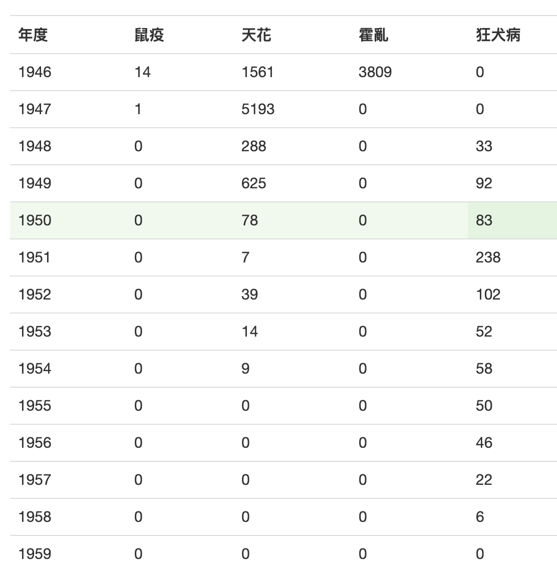 相比目前的武漢肺炎,除了湖北以外的地區,死亡率大約在2%左右,但七十年前的台灣疫情動不動都是30%起跳,可見戰後初期的公衛系統,幾乎是崩壞的。這也是二二八事件的直接因素之一。Mattel 曾經寫了一篇文章〈狂犬病與台灣防疫〉,裡面有詳細的數據。
