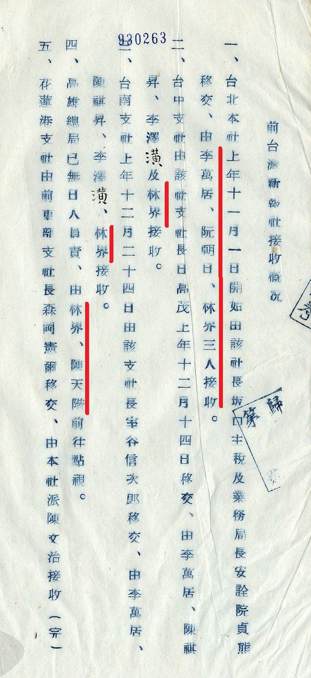 林界,時年39歲,擔任苓雅區區長,戰前曾任高雄「新和鐵工廠」技師、台東東台製糖糖廠公務主任,後來又和他的兄弟合組「黑板組鐵工廠」;戰後,1945年11月1日,隨同李萬居、阮朝日兩人,接收《台灣新報》台北本社(接收後改名為《台灣新生報》),12月14日接收台中支社,12月24日接收台南支社,最後再到高雄,林界和陳天階兩人接收該報高雄總局,並擔任印刷廠廠長。1946年初,李萬居組織《台灣光復會》,由李萬居擔任會長,林界和當時的市參議員陳浴沂擔任副會長。同年11月受命擔任高雄市苓雅區的第二任區長。