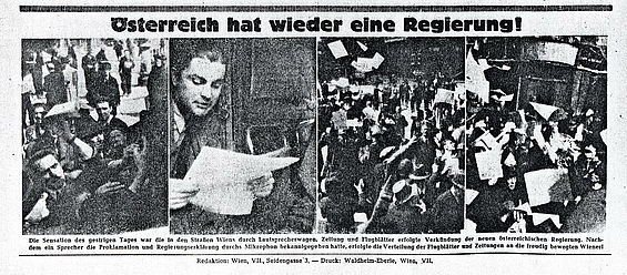 就在四月底的這一天,奧地利三大政黨社民黨、人民黨和共產黨大老們在居民的夾道歡迎下,來到首都維也納的市政廳,共同發表了獨立宣言(Unabhängigkeitserklärung),此宣言視德國於1938年併吞奧地利的行為為無效,也奠定了奧地利重新建國的基礎,在這天奧地利也成立了臨時政府。而不到兩周時間過後,德國正式投降。
