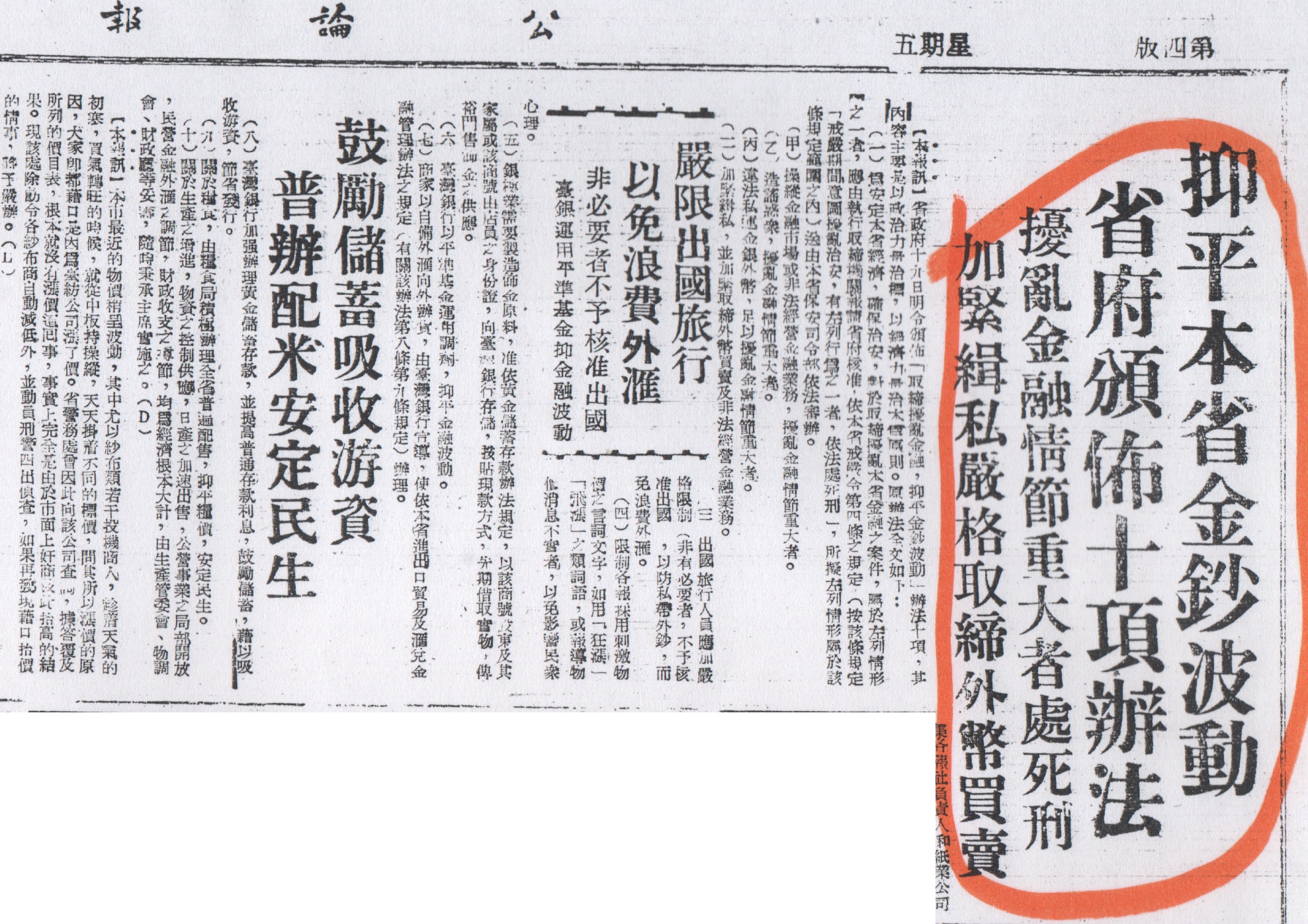 - 公債除黃金外,可以外幣、白銀、銀元霍金圓券照市價折合繳納,政府償還時亦同。