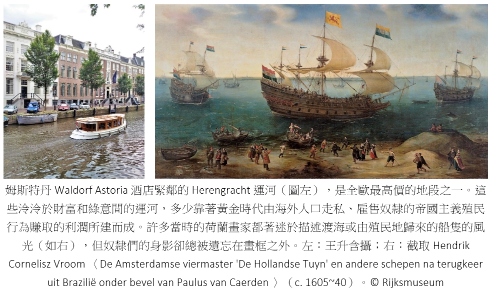 身為「憲章公司」(chartered company),西印度公司被荷蘭政體授予壟斷國際貿易、發動戰爭、治理殖民地、處置囚犯等現代國家才具的權力;也因此,西印度公司和上篇提及的東印度公司在海外不符程序正義、且不受民主體制究責(accountability)限制的作為,被視作荷蘭國意的延伸。十六到十八世紀間,這兩大憲章公司左右逢源,於殖民地累積大量營收、在國內又受政府和民間投資人資助,一度成為人類經濟史上獲利最高的公司。[5]當中的許多利潤,即被用來興建阿姆斯特丹著名的運河網絡。蓊鬱盎然的水道下,原來一直都悄悄流竄著幾百年來從未消化分解的不義之財。