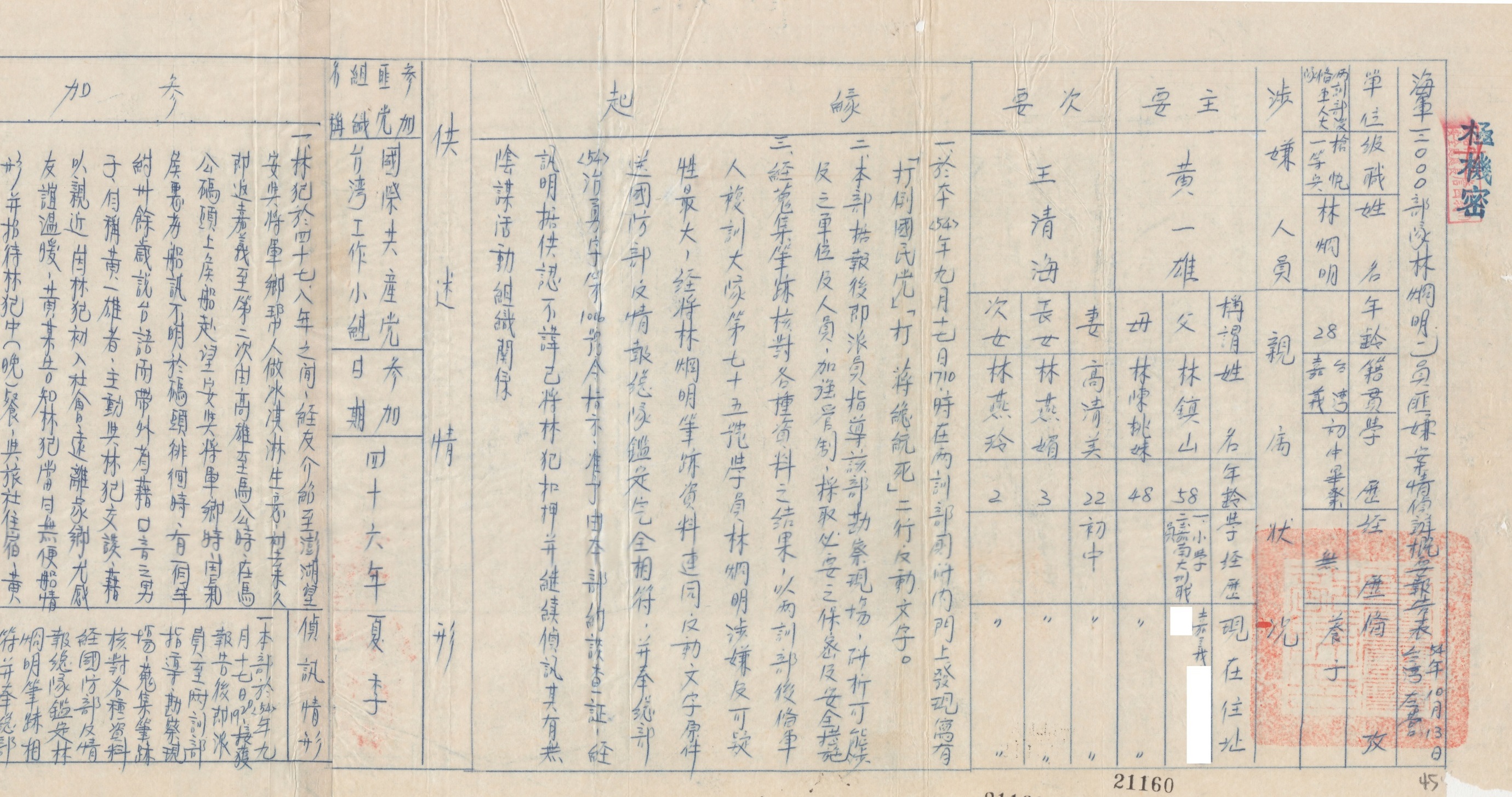 (二)此案非常特殊,原來只是書寫「打倒蔣中正」,卻被追加了知匪不報的罪名,而遭判處少見的二十年徒刑。