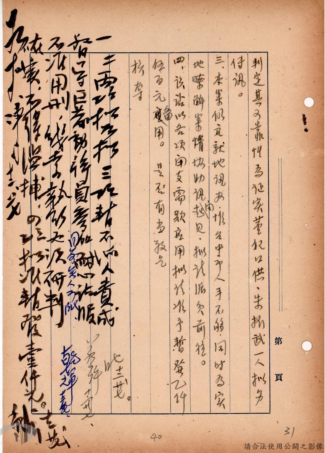 但是,警總軍法處竟然說證人的證詞不夠「確切」,筆跡部分已經中央警官學校鑑定無誤,憲兵學校的鑑定只供參考而已;同時經函詢警察機關的回覆也都否認有刑求情事。