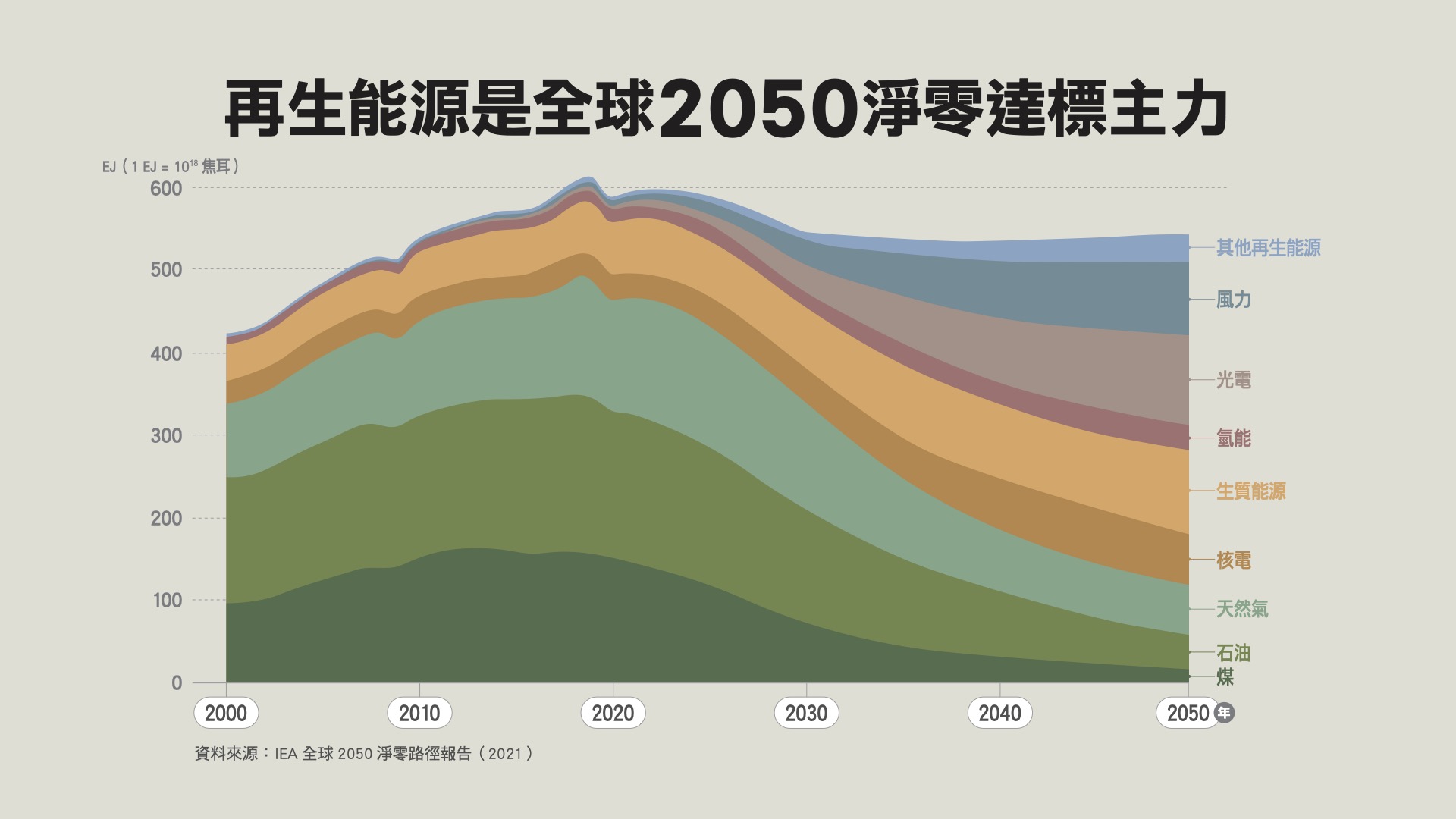 - 國際能源總署預估,最快在2026年,再生能源即將超越燃煤,成為全球最主要發電形式。
