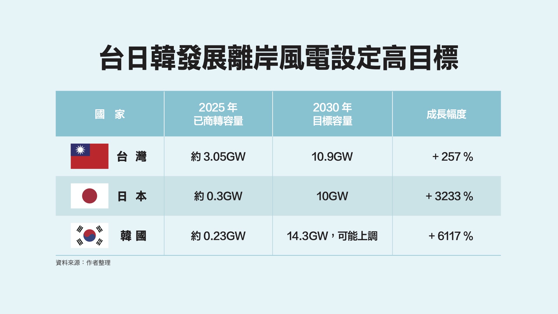 東亞國家在過去半世紀經常透過政策引導特定產業,把企業視為國家戰略的延伸。面對離岸風電,各國政府往往希望它不只是供應綠電的電廠,還是同時推動地方振興、產業發展、能源安全的工具,並透過競價確保綠電價格越低越好。離岸風電成為多種「國家願望」集合體。然而,這些國家願望,過去其實未曾全部加諸於傳統核能或火力電廠。