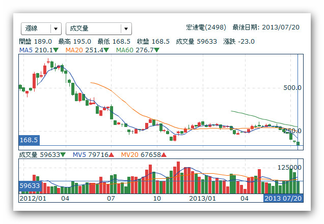 不過,2012年以後,宏達電卻是每況愈下。王雪紅在2012年1月聲稱九二共識是企業發展的生命,但2012年宏達電的每股獲利卻只有前一年度的27.5%(詳見表五)。今年第一季,竟然只剩每股0.1元,表五與表六的宏達電股價變化,更可見宏達電在力挺馬英九路線與九二共識後的表現,實在令投資人唉聲嘆氣。現在,摩根大通證券乾脆建議宏達電與中國華為合併,才有生路。還有,別忘了,王雪紅從2012年7月至今年6月,已經一年沒有購買宏達電的股票了;投資人還傻傻地在買嗎?