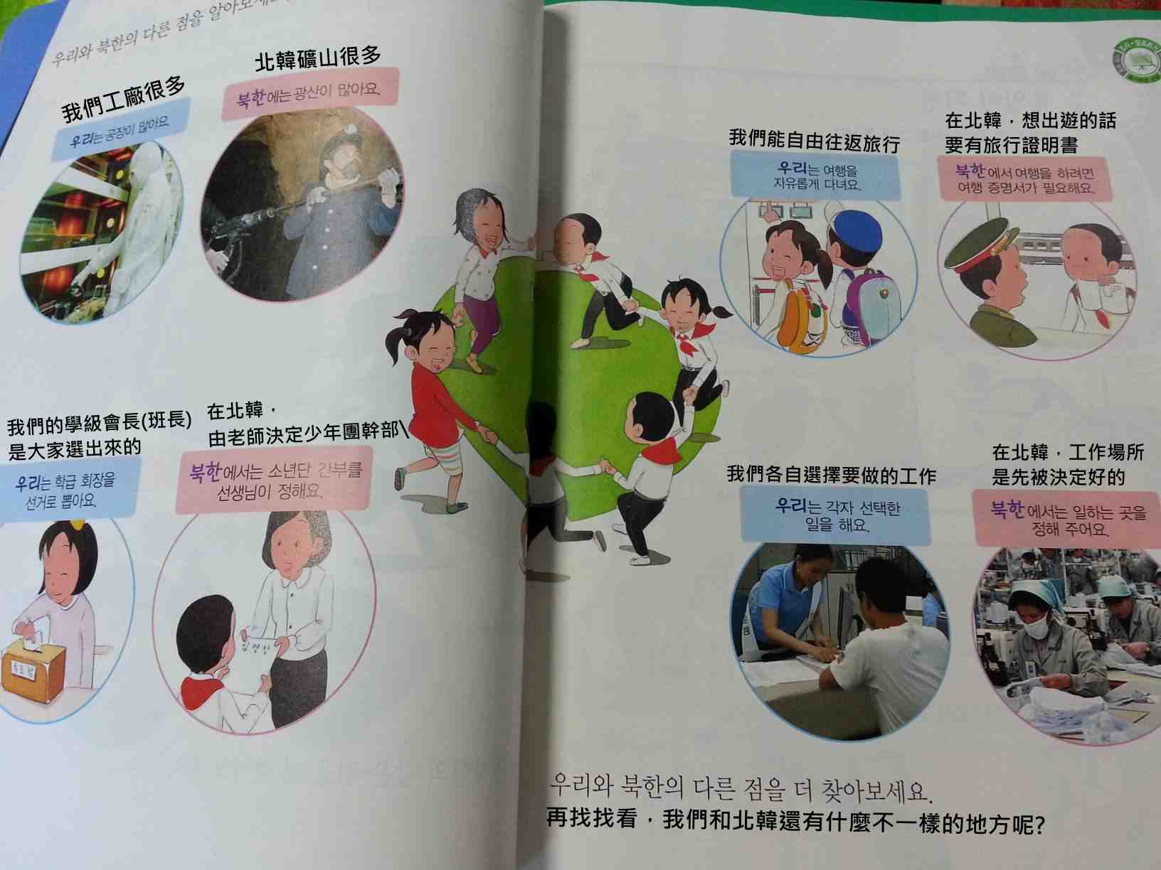 「讀小二的女兒今天拿到了課本。打開看了看,原來他們開始學習有關北韓的東西了。