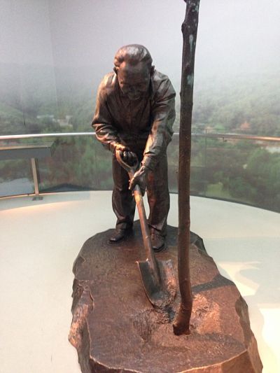 一進到深圳的城市發展展覽館,就是大型的開荒牛銅雕。我側頭悄悄地問同事: