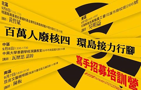 另外,近日由陳玉峰教授等人共同發起的「百萬人廢核四環島接力行腳」,第一場的「寫手培訓營」也將於九月七日早上十點起,在花蓮縣營造業職業工會(花蓮市商校街266號),由作家吳明益揭開第一場的培訓課程(詳細請見連結)。