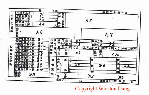1970年代至1980年代,美國媒體密集報導台灣的Spy Students(特務學生)在美國監控台灣留學生的故事。以1977年4月25日的《Monday》為例,"U.S. Foreign Students vs. Government Spies"一文報導美國對於國民黨特務學生、伊朗政祕密警察組織(SAVAK)與韓國中情局(KCIA)在美國監視留學生的不滿。這篇報導提到國民黨特務學生使用的報告表格內容,強調只要被打報告的人,護照會被吊扣,不然就是家人被威脅。