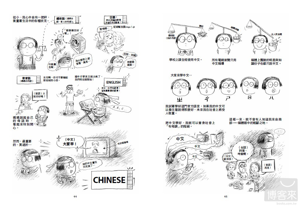 全書記述獨立卻彼此關連的成長記憶, 試圖拉出一條線性的軸,藉由小女孩成長過程中不斷遭遇的文化衝突與自我辯證敘說政治上的個體覺醒歷程,即「成為台灣人」的歷程。