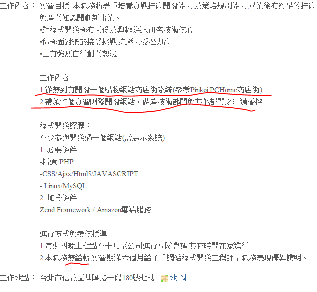 馬的傑出政績「22K」,在幾年前飽受台灣人批評;如今,台灣人竟然對此習慣了,而且只求「22K」。現在更有網路公司勇敢地刊出徵才廣告,工作六個月無薪,期滿只發給「網站程式開發工程師」職務表現優異證明。