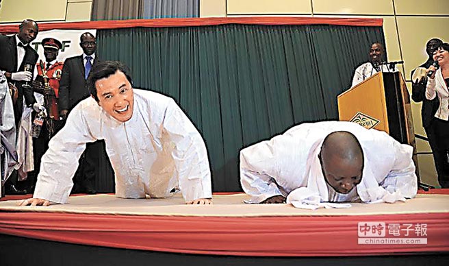 「我把兩國締結邦交的文書放在底下,中間夾了複寫紙,這樣簽下去銀貨兩訖…我是說,兩式兩份,非常方便,科技始終來自於人性。我們還會在機場放上牌子,註明『THANKS TO THE PEOPLE OF THE REPUBLIC OF CHINA』,你們也可以照個相、打個卡,放在Mr. Ma的臉書上面,相信在與甘比亞斷交之際,一定可以提振貴國的人心。」