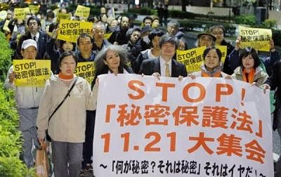 話說這幾天全國上下吵得最兇的事情,是自民黨打算在本會期強行通過「特定秘密保護法」,這個法案之所以如此具有爭議性,在於國家可以基於國防、外交、反恐等空泛的國家安全目的去劃定「特定秘密」。國家將可以拿保護「特定秘密」作為理由,不公開政府機關主張是特別秘密的事務,包括核電廠的資訊乃至福島核災的影響和輻射數值。此外國家也可以強制取得特別秘密關係者的所有個人資料,包括信貸履歷和病歷。當然,針對最令國家討厭的媒體,也增訂了妨礙特別秘密罪,處罰揭漏國家特別秘密的媒體人。可以說,這個政府根本是在打造一個完全的極權國家。