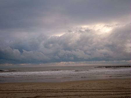 狂暴的海神波賽頓,肆虐沙灘後,更毫不留情地撲向沿著海岸邊的馬路上。低溫、陰霾,讓海灘淪為彷彿被廢棄的一處爛泥。