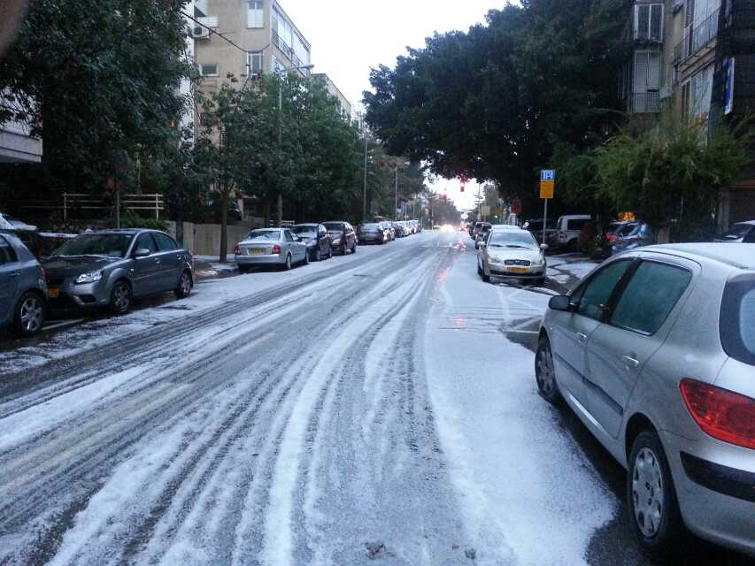 一天嚴寒的傍晚,幾乎不下雪的特拉維夫竟降下冰霜和冰雹,原本暗黑色的柏油路,瞬間抹上一層「白糖」,讓孩子們找到好機會打雪仗。但卻也讓救護車的救援聲此起彼落,忙翻了天。
