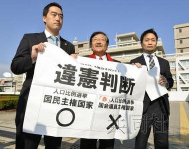 其實律師團大張旗鼓提告2009年就開始了,告的是眾議員大選,結果有7件經各地最高法院宣判違憲。2012年11月在民主黨野田首相以解散國會的條件下,通過選舉制度改革法案,但因配套措施及施行細則不完善,一個月後的總選舉依然是處於違憲狀態下進行。兩個律師團以「一票の格差」(每一張選票的價值差異)最大達到2.43倍全面提告違憲,其中14起訴訟被認定「違憲」,2起被判「選舉無效」。