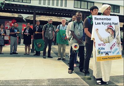 然而,以農民之路捍衛糧食主權和反對自由貿易的立場,想當然爾,是希望WTO會員國之間誰也不退讓,致使談判破裂,讓WTO停擺,然後各國可以就國家糧食安全的考量,繼續投資農業。
