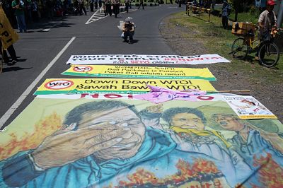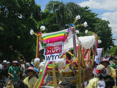 如此一來,大國的農產品便得以藉由「自由貿易」的形式傾銷小國,讓小國的農產品失去「競爭力」,進而使農民失業、農村凋零,同時又可以控制小國。