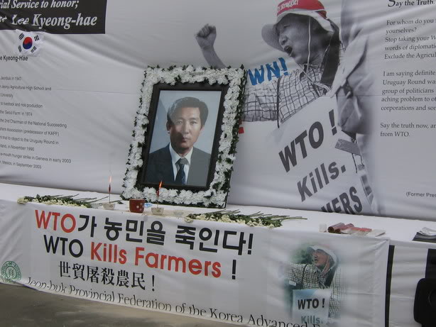 李京海,曾擔任過韓國漁農業聯盟主席的南韓農民,是一位為了反WTO而死諫的人士。