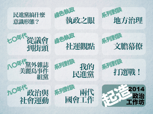 在【起造:政治工作坊】,我們回顧政治變革史,也認識政治實務工作。
