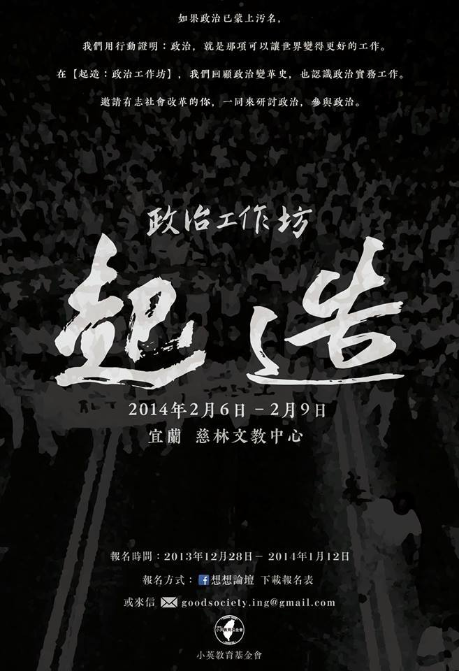 【起造:政治工作坊】邀請有志社會改革的你,一同來研討政治,起造新政治!