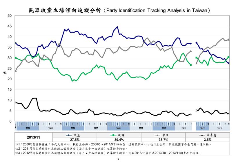從上面台灣民意指標調查公司公佈的民眾政黨認同追蹤圖可以看出來台灣民眾對政黨的認同空前低落。其實,民眾不只對政黨認同大幅降低,甚至對整個體制的不信任度都在2000年後持續性地攀高。