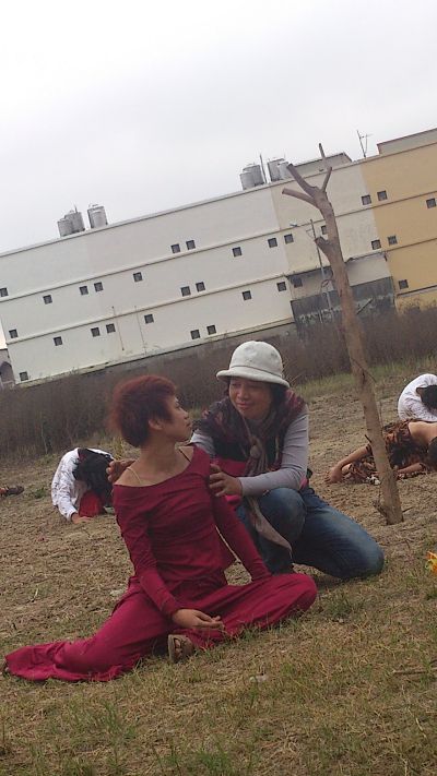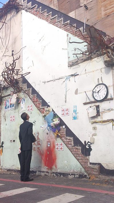 舞劇襯著近黃昏的大埔平靜光景,冰冷的鋼筋結構、方正的現代化格局硬生生地闖入其中,既違和又諷刺。即便蕭紫菡舞蹈劇場來到大埔,引起一陣騷動,大埔仍舊很安靜,靜謐到讓人無法聯想去年七月中旬劉政鴻趁著大埔字就會北上總統府抗議時,派出黑色警察軍團,強拆張藥房四戶暴戾痕跡;無法想像去年底張大哥鬱結的情緒,這裡好像什麼事都沒有發生。