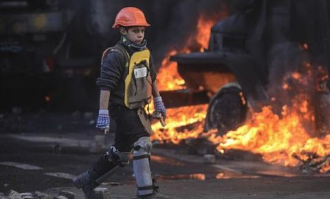 新聞照片中的男孩只有十三歲,雖然大人們告訴他少接近廣場很危險,但他經常過去廣場幫忙撿石頭,推推車,協助其他人。另一影片﹝注2﹞則是烏克蘭的少女認真地告訴世人必須要幫助他們的國家,他們都知道自己正處在危險中,但仍然堅定地對抗烏克蘭總統亞努科維奇的親俄政權﹝請見影片﹞。