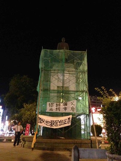 22日下午,看到網路上分享台南湯德章紀念公園,孫文銅像被拉下的新聞,讓我想起去年夏末所看到的情景。