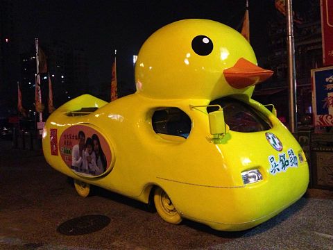 當然讓市民幸福為使命的民進黨候選人,也透由小鴨宣傳車放送著滿溢的幸福哩。(圖片來源:Joanna提供)