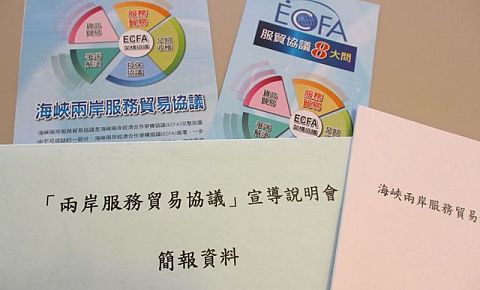 行政院大陸委員會印製的兩岸服務貿易協議宣傳手冊。(圖片來源:維基共享資源)