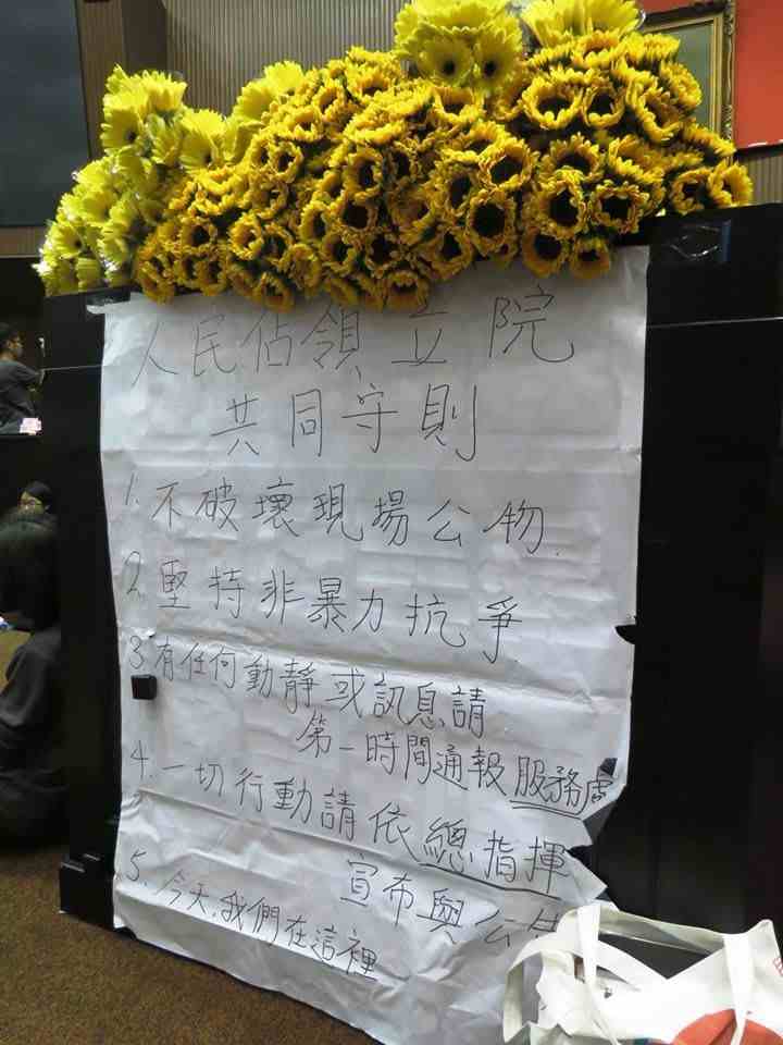 然而,親馬的不肖政客與特定媒體則抹黑學生,甚至誣指學生違法、暴力、是「暴民」等語,這種抹黑的說法,完全背離普世民主憲政精神。誣指學生攻占國會是暴力、違法的說法,是認為學生入侵國會構成刑法侵入住居、妨害公務及毀損等罪,但在正常民主憲政的推論下,學生的行為並不會構成犯罪。