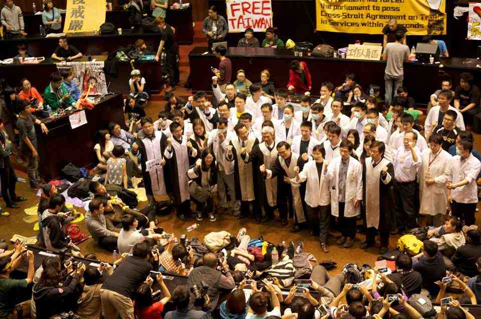 馬英九總統下令國會「服貿這會期一定要過」,立法院國民黨團即未經委員會審議,擅自宣佈兩岸服貿協議送交院會存查,嚴重牴觸憲法民主原則,引爆學生發動318佔領立法院行動,並順利攻佔國會,同時上了國際媒體,包括美國CNN、英國BBC、日本NHK都有即時報導,學生訴求政府必須退回服貿,並建立監督法制,也因為馬總統未於期限內回應訴求,學生將持續佔領立法院,擴大號召包圍各地國民黨黨部。