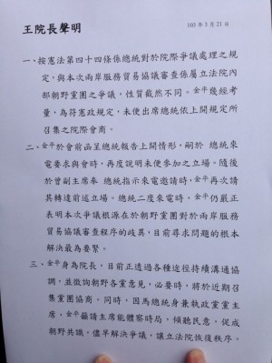 於是他了解到,自己最佳的戰鬥位置終究是國會。背著國民黨旗的王金平如果不是國會議長,就什麼都不是。他那能夠和在野人士眉來眼去、縱橫國會的專長,到頭來很諷刺的成為無法在黨內登頂的原罪。