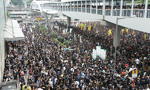 2013年10月20日,12萬香港人遊行集會後,人群佔據政府總部門外「公民廣場」、添美道、中信大廈旁的行人路及天橋上,反對香港政府在不交待理據的情況下不發牌予香港電視網路。