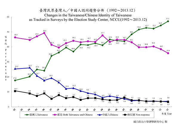 再者,根據臺灣選舉與民主化調查(Taiwan’s Election and Democratization Study, TEDS)於2013年7月所執行的全臺灣面訪的資料,臺灣民眾對於「臺灣文化與中華文化」的認知偏向認為相同者有52%,偏向認為不同者為39%,可見多數臺灣人仍認為自己處在一個臺灣文化與中華文化混合的脈絡中。那麼,「反中」學運能受到支持又從何說起呢?