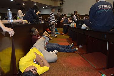 圖說:疲憊的學生在議場裡倒地而睡。圖片來源:VOA(美國之音)