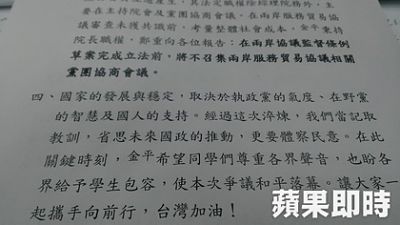 這種新型態的「台獨」,或許「思想層面薄弱」,但是它是從生活從生命去體會的,所以它是務實的,容易全面擴散的,他是國共兩黨未曾面對過的,所以也是最難以防堵的。相較於服貿,對北京而言,如何讓學運趕緊落幕,台獨浪潮趕緊退燒,恐怕才是當務之急。近日報載,中國涉台官員透漏,當初先服貿後貨貿是台方主動提出的,這項消息若是屬實,為何選在這個時間點放話就大有玄機了。