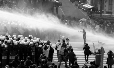 324清晨鎮暴水車驅離民眾(圖片來源:李清遠@台大新聞E論壇)