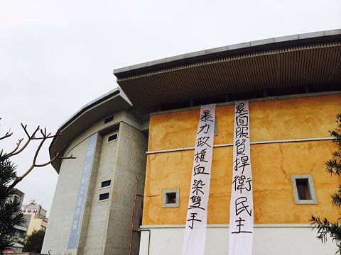 行政院事件(3/24)的當天,交通大學的客家學院在外牆上掛了:「暴力政權血染雙手;退回服貿捍衛民主」的巨型布條(見圖1)。這是身為交大人感到無上光榮的一刻,對於反對國家暴力以及爭取民主的訴求,可以問心無愧地以一種無聲的方式向社會大眾「大聲」的表達自己的意見。
