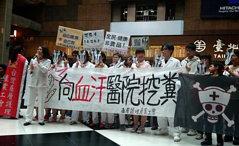 舉例而言,自今(103)年開始,護理人員正式納入《勞基法》保障,在制度上是一大進展,但實際情況呢?一位護理師曾私下向我透露,有學姐在護理師納入《勞基法》後,依據實際工時填報加班費,卻被上頭主管約談,還被告知「晚下班是因為效率不彰,沒扣錢就不錯了!」此後沒有人敢再填加班費。這絕對不是醫療行業獨有的現象,各行各業稍有勞動意識的人,都會遇到相似的窘境。只是在醫療行業中,無論是醫師或護理人員,處處階層分明,下屬對上級不只有職級、輩分的落差,更有專業知識的落差。因此「工時」和「學習」連成一氣,混為一談,是現實上最常見的遁詞,甚至連基層醫療勞動者都自認如此。要發展勞動意識,談何容易,遑論籌組或加入工會(而非「公會」)了。