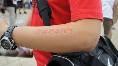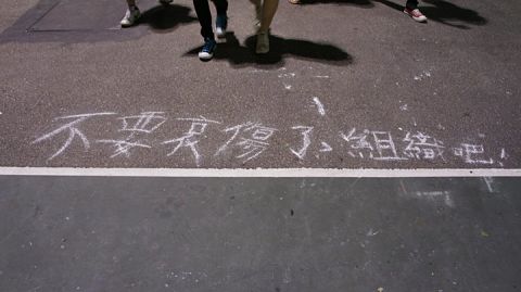 晚會結束後散場,我得小心走路,以免踢到許多趴在地上寫粉筆字反愛國洗腦教育的年輕人,其中有人寫著「不要哀傷了,組織吧!」令人感到無比的力量。隨著人潮擠進地鐵,一位先生看到我手臂上有國際特赦組織幫我印上的「尋釁滋事罪」,就好奇與我攀談。原來這位先生並非港民,而是從廣東特地前來香港紀念六四的中國公民,他說參與維園晚會是非常重要的事情,等兩歲的孩子懂事了,以後也要帶他來參加。這位先生的談話直到現在都令我難忘,想想我的夏夏也剛滿兩歲,六四天安門事件對他而言又具有什麼意義呢?
