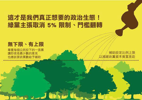綠黨主張取消政黨補助款5%門檻的文宣(圖片來源:綠黨臉書專頁)