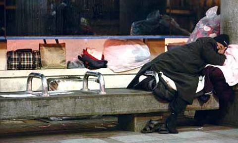 圖說:街友無處可去,連公園椅子都裝上鐵欄杆,使之不得休息。圖片來源:轉貼自當代漂泊協會/楊萬雲攝影。