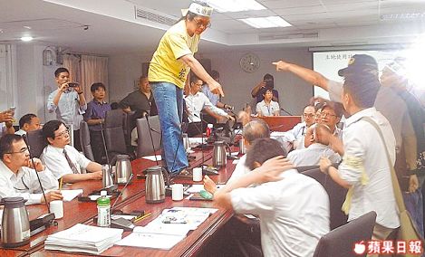 圖說:航空城反迫遷聯盟在營建署反對屬於於自經區其中之一的航空城開發案。圖片來源:蘋果日報。