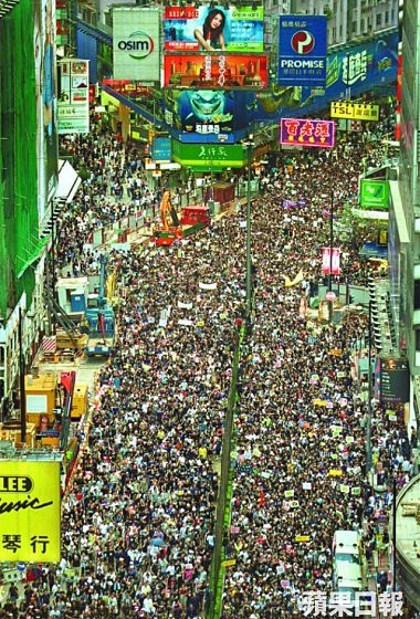 這些種種做為在七一之前毫不避諱的干涉,無懼於港人民怨爆發,似乎不論五十萬人或一百萬人走上街頭,都無法撼動極權體制所欲在港貫徹意志的決心。用「和平」、「法制」的緊箍咒恐嚇人民,消解遊行的效用,拔去示威者的獠牙,讓香港民眾的抗議之聲,最終流於煙火而非砲火般的威脅或抵抗掌權者的蠻橫。